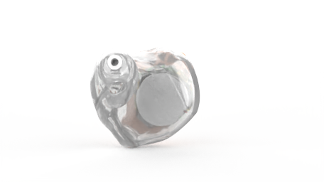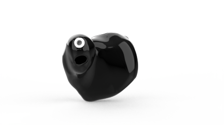 Custom hearing aids that are partially visible in the outer ear.